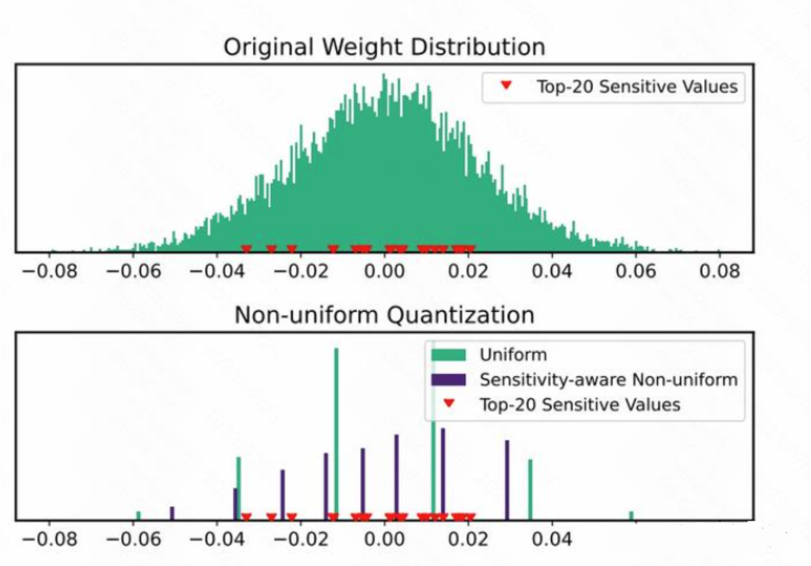 通过观察到部分权重决定了最终模型的量化性能, 提出以非均匀量化的方式缩小这些敏感权重的量化误差. 即通过 loss 的二阶 hessian 信息来确定量化敏感的权重, 将量化点安置在这些敏感权重附近, 其它点以 MSE 最小来安置. 该方法以少量的存储空间换来了目前最优的 4-bit weight 精度, 但其缺点也是极其明显: 由于采用 LUT 来实现非均匀量化, 导致其 kernel 在 batch > 1(文中的 batch 我均定义为 batch * seqlen)的情况下, Linear 的执行速度急剧下滑。参考资料: